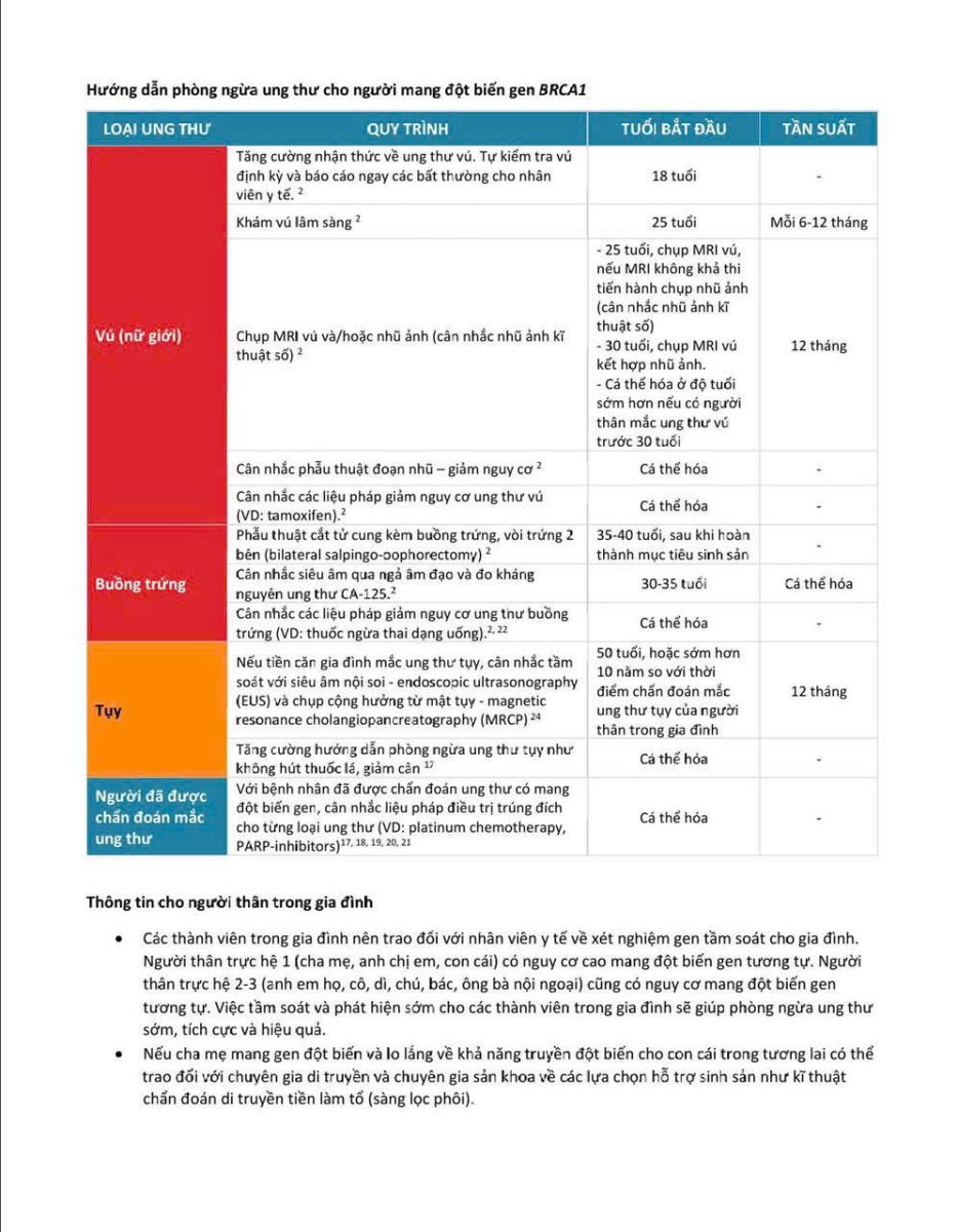Việc xét nghiệm gen BRCA1 không chỉ giúp bệnh nhân hiểu rõ nguy cơ cá nhân, mà còn giúp bác sĩ xây dựng phác đồ theo dõi phù hợp, tối ưu hóa khả năng phát hiện và điều trị sớm ung thư.